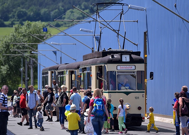 Jena. Großen Zulauf fand am Samstag der „Tag der offenen Tür“ des Jenaer Nahverkehrs auf seinem Betriebshof in Burgau.