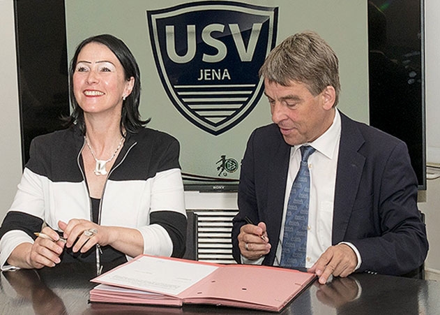 Jena. Der FF USV Jena unterzeichnete die Vereinbarung mit der Stadt Jena für die Nutzung des neu gebauten Stadions.
