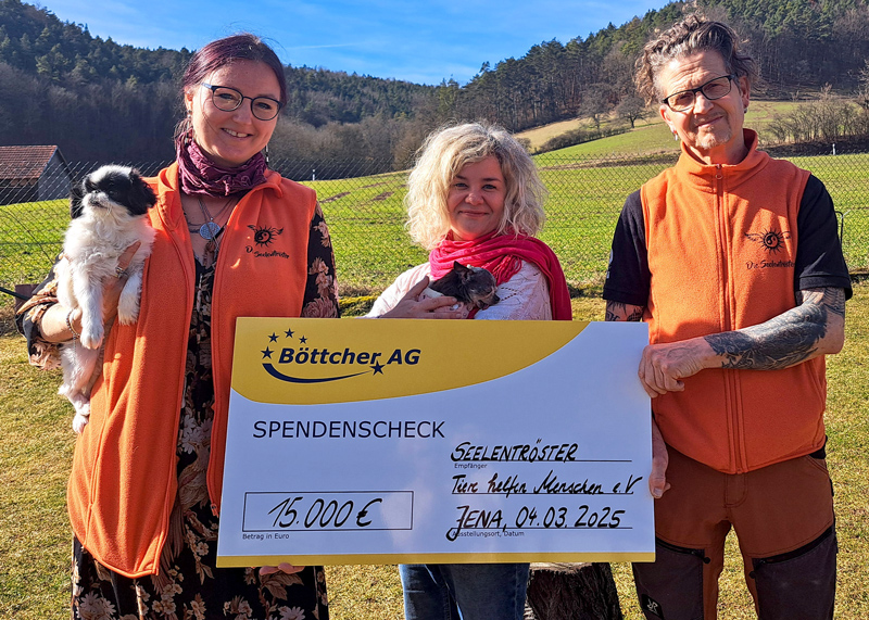Jena. Ein Herz für Tiere: Böttcher AG spendet 15.000 Euro an „Die Seelentröster – Tiere helfen Menschen e.V.“.