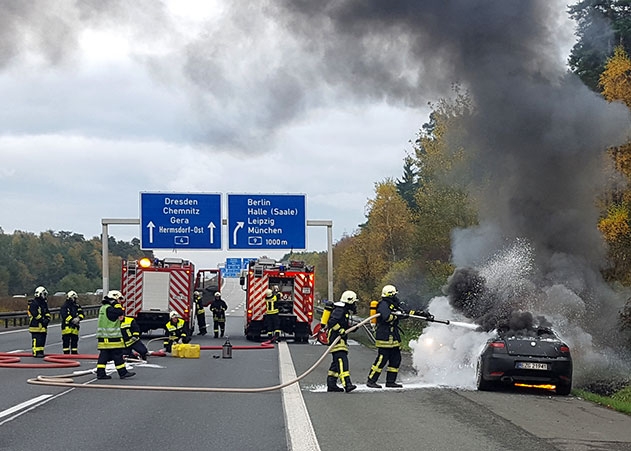Jena. Am Sonntag kam es auf der A 4 kurz vor dem Hermsdorfer Kreuz zu einem Pkw-Brand.