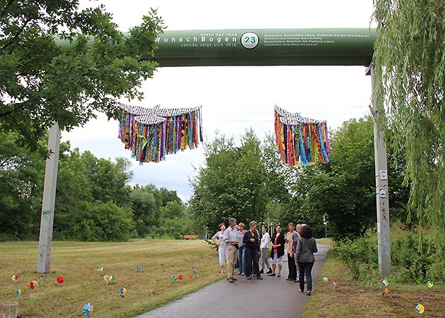 Jena. Der Wunschbogen an der Fernwärmeleitung in Lobeda-West begrüßte Fußgänger und Radfahrer.