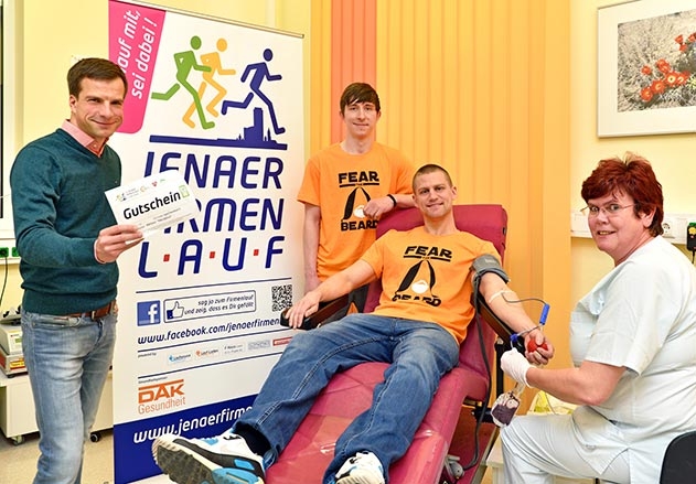Jena. Science City Jena-Mitarbeiter eröffnen Blutspende-Aktion am Uniklinikum Jena.