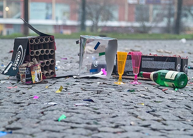 Jena. Das große Aufräumen nach der Fete. Wiedereinmal hatten die Männer des Kommunal Service Jena alle Hände voll zu tun.