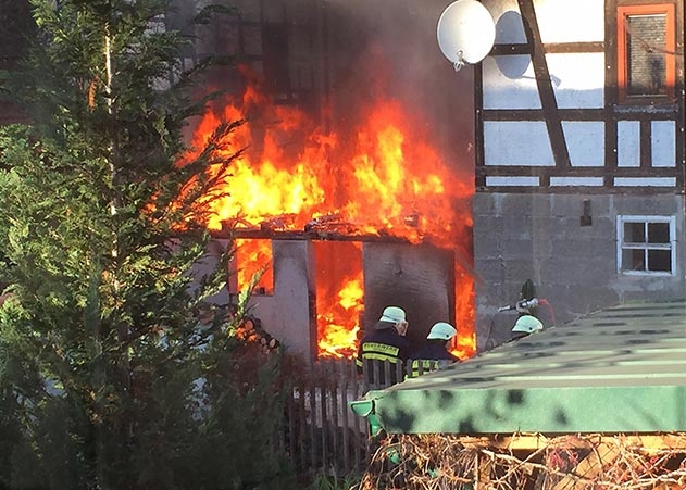 Zöllnitz. Am Sonntagnachmittag ist in Zöllnitz bei Jena ein Schuppen in Flammen aufgegangen.