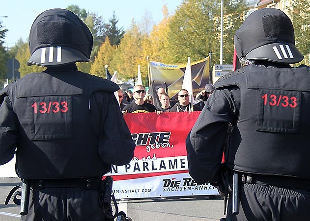 Jena. Den Marsch der Rechtsradikalen am 3. Oktober durch Jena konnte die Linke nicht verhindern. Schwere Zwischenfälle verhinderte die Polizei.