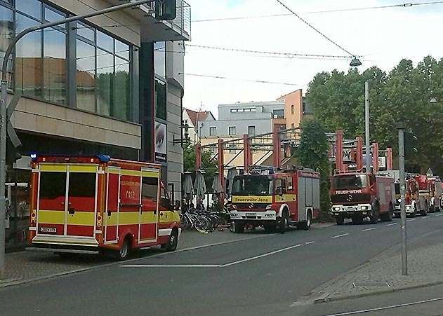Jena. Ein Kabelbrand führte am Sonntagmittag zu einem Feuerwehr-Großeinsatz in der Holzmarktpassage.