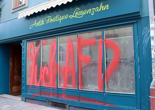 Jena. Politisches Motiv nicht ausgeschlossen: Jenaer Wahlkreisbüro der AfD mit Graffiti besprüht und Farbbeuteln beworfen.