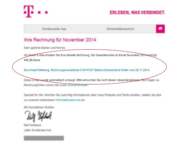 Jena. Aktuell erreichen die Verbraucherzentrale Thüringen viele Beschwerden von Verbrauchern, die per E-Mail gefälschte Rechnungen der Telekom erhalten haben.
