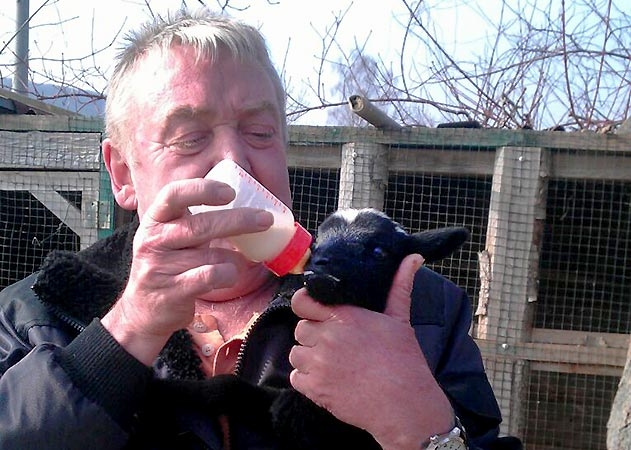 Jena. Ein Mutterschaf hat in Jena Drillinge bekommen. Der Züchter übernahm Mutterpflichten.