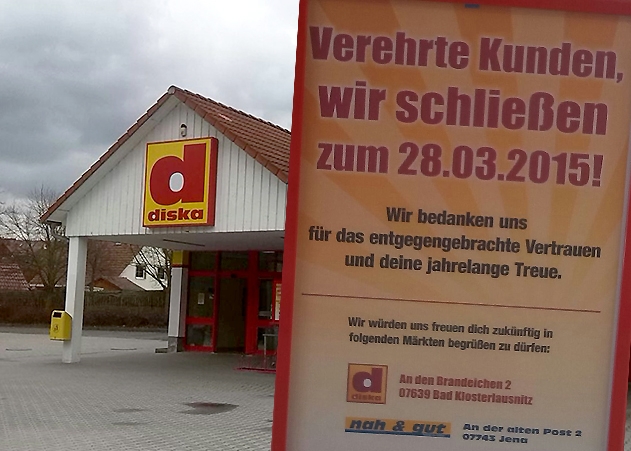 Jena. Der Supermarkt "Diska" im Ortsteil Jena-Wogau schließt am heutigen Samstag für immer seine Türen.