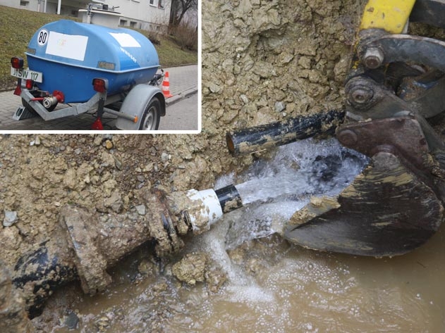 Jena. Ein Rohrbuch unterbricht die Wasserleitung in der O.-Mühlmann-Straße.