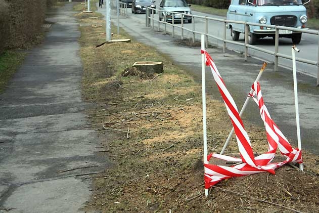 Jena. Noch sind die frischen Baumstümpfe zu sehen. Entlang der Erfurter Straße wurden 22 Bäume geschlagen.