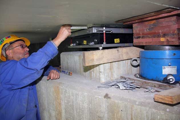 Jena. Für den Austausch von zwei Lagern brachte der Jenaer Nahverkehr die Straßenbahn-Brücke in Jena-Burgau an den vergangenen zwei Tagen kurzzeitig zum „Schweben“.