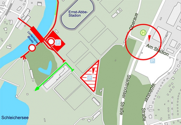 Jena. Besucher des Schleichersees müssen am Samstag wegen des Fußballspiels FCC gegen BFC Dynamo mit Behinderungen rechnen.
