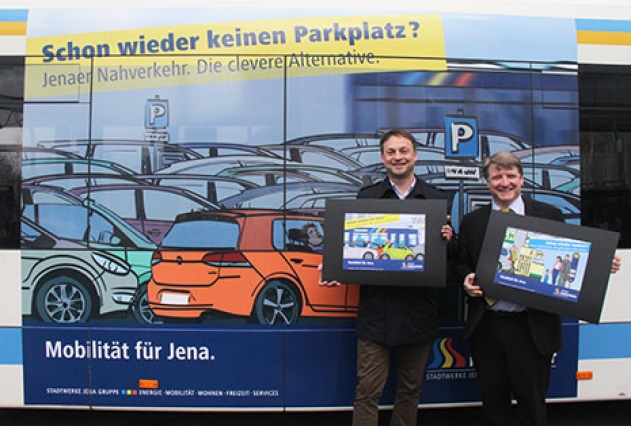 Jena. Die neue Marketingkampagne des Jenaer Nahverkehrs startete mit unterhaltsamen Motiven im Stadtgebiet, die zum Schmunzeln a nregen. Jena. Die neue Marketingkampagne des Jenaer Nahverkehrs startete mit unterhaltsamen Motiven im Stadtgebiet, die zum Schmunzeln a nregen. Die neue Marketingkampagne des Jenaer Nahverkehrs startete mit unterhaltsamen Motiven im Stadtgebiet, die zum Schmunzeln a nregen.