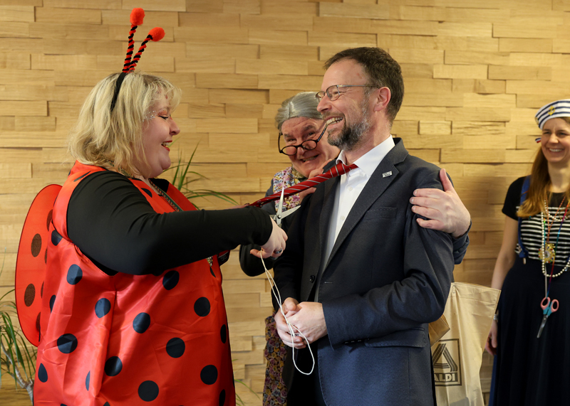 Jena. Krawatten-Alarm: Närrinnen stürmen OB-Büro in Jena und feiern ausgelassen.