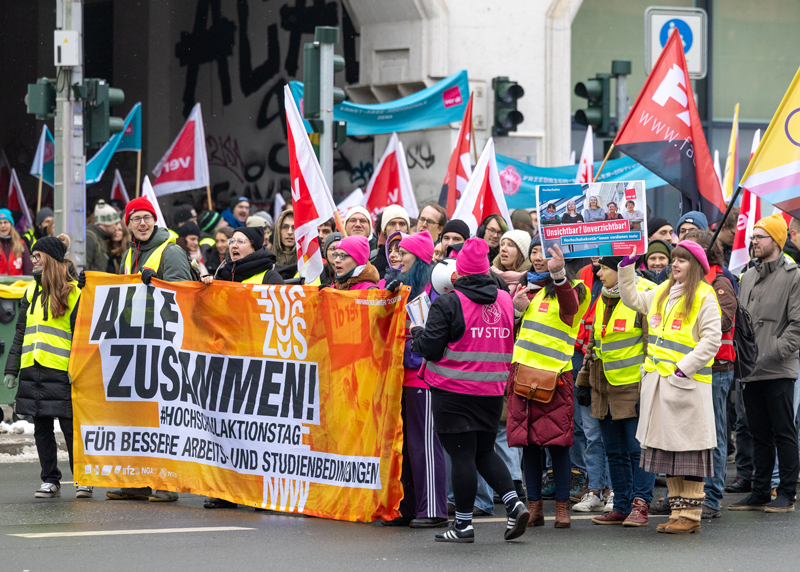 Jena. Warnstreik in Jena: 500 Hochschulbeschäftigte und Studierende demonstrieren für bessere Bedingungen.