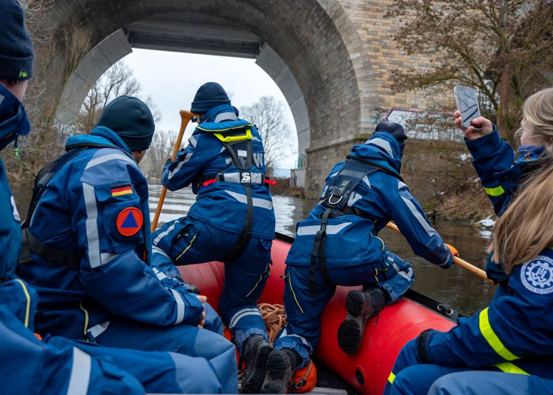 Jena. Ernstfall in Jena geprobt: Technisches Hilfswerk am Samstag auf der Saale im Einsatz.