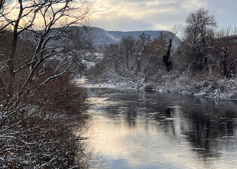 Jena. Gefahr auf dem Eis: Stadt Jena warnt vor Betreten der Saaleufer.