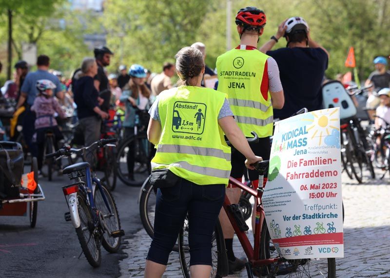 Jena. Etwa 100 Radfahrende demonstrierten am Samstag in Jena für eine kinderfreundliche Stadt.