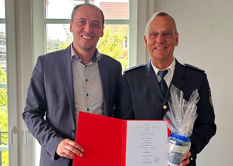 Jena. Besondere Würdigung: Jenas Feuerwehr-Chef Peter Schörnig zum Branddirektor befördert.