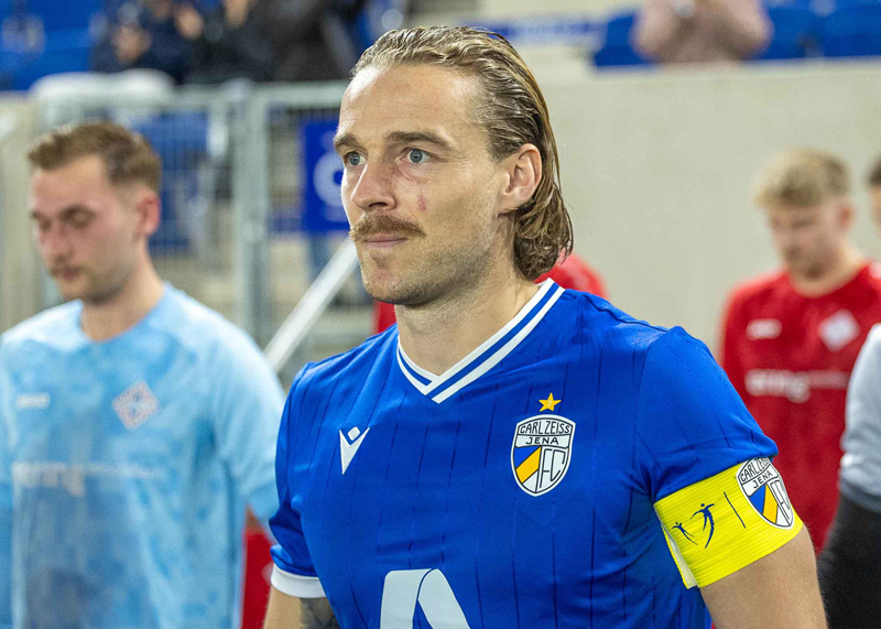 Jena. FC Carl Zeiss Jena-Kapitän Nils Butzen vom sammelt für Kinderhospiz im Thüringer Wald.