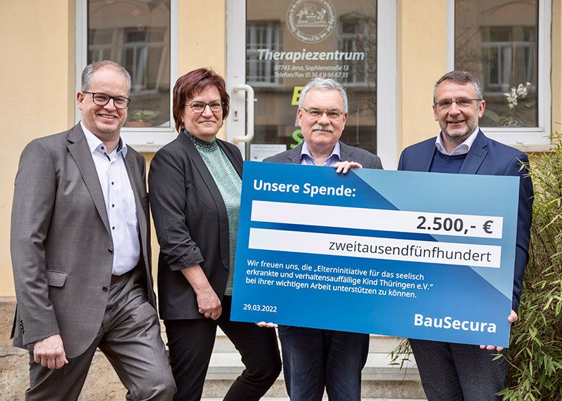 Jena. Versicherungsmakler BauSecura unterstützt die Jenaer Einrichtung „Elterninitiative für das seelisch erkrankte und verhaltensauffällige Kind“ mit 2.500 Euro.