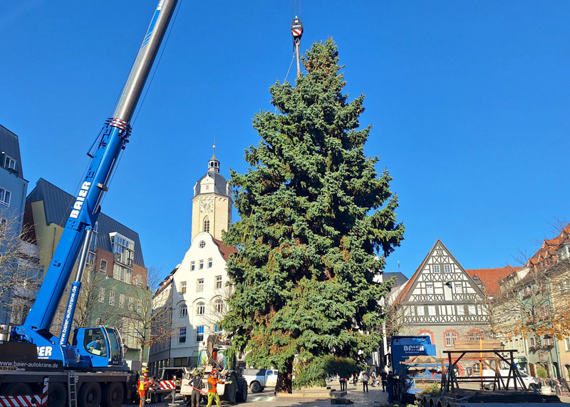 Jena. Seit Freitag thront der diesjährige Weihnachtsbaum auf dem Jenaer Marktplatz.