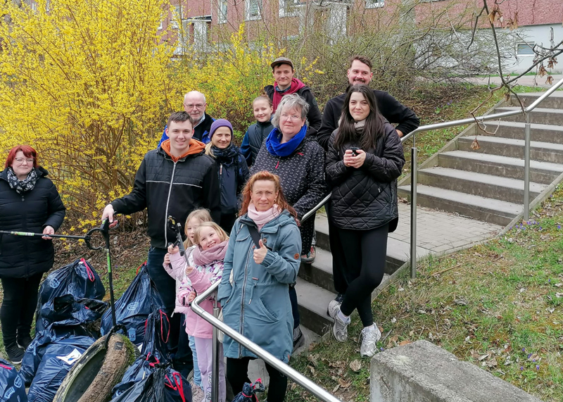 Jena. Bürgeraktion in Jena-Winzerla: Müllsammeln in Gemeinschaft für einen sauberen Stadtteil.