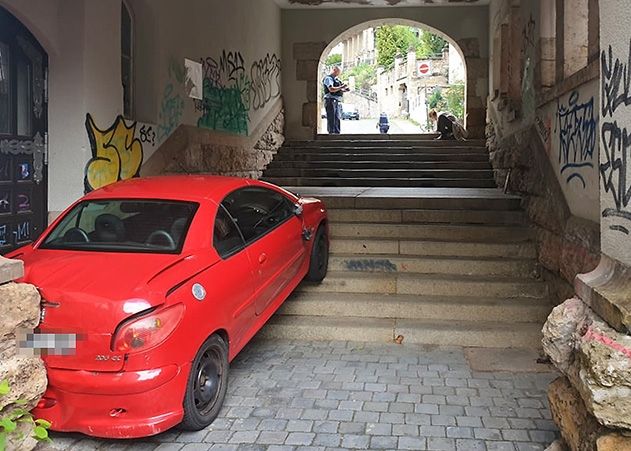 Jena. Handbremsseil gerissen: Auto macht sich selbstständig und brettert durch Volkshaus-Tunnel in Jena.