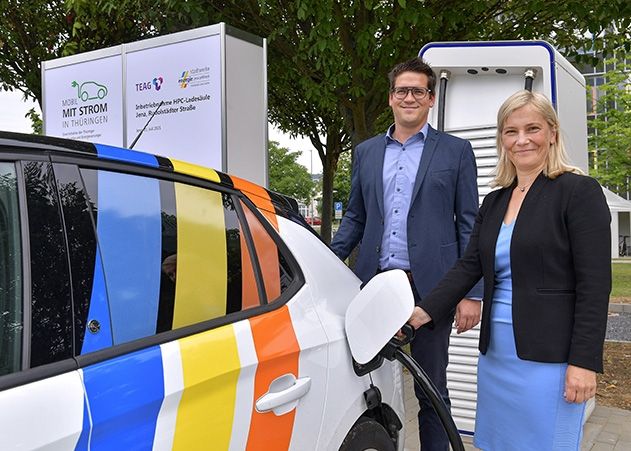 Jena. Zehn Minuten tanken: 250 Kilometer fahren. Stadtwerke Jena und TEAG schalten erste HPC-Schnelllade-Station für Jena zu.