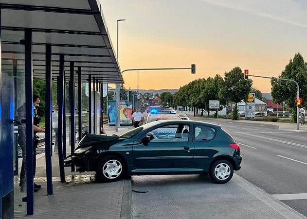 Jena. Ein verbotenes Wendemanöver eines jungen Autofahrers endete am Samstagabend in Jena-Winzerla im Wartehäuschen der Straßenbahn.