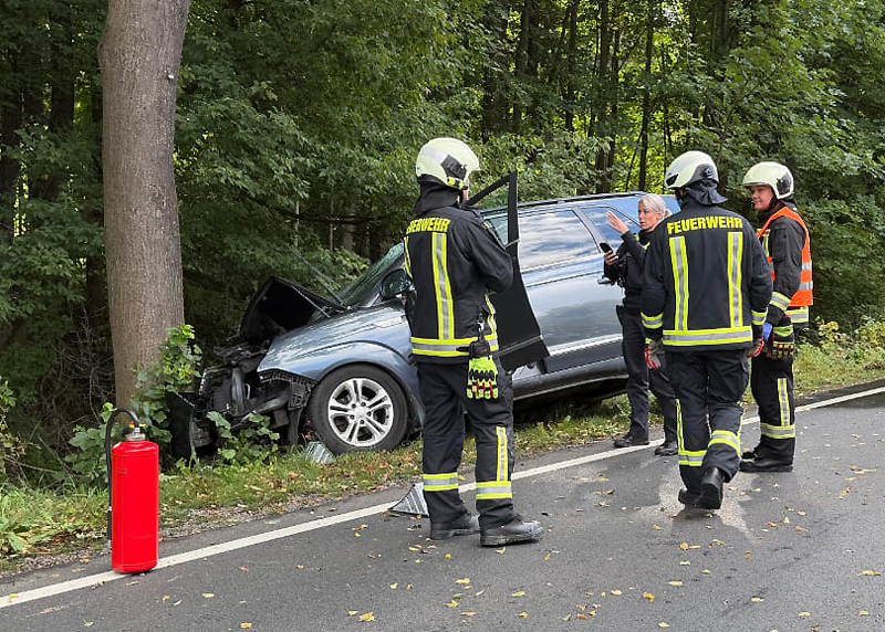 Jena. Schwerer Unfall auf der Stadtrodaer Straße: Pkw kracht gegen Baum – Fahrer schwer verletzt.