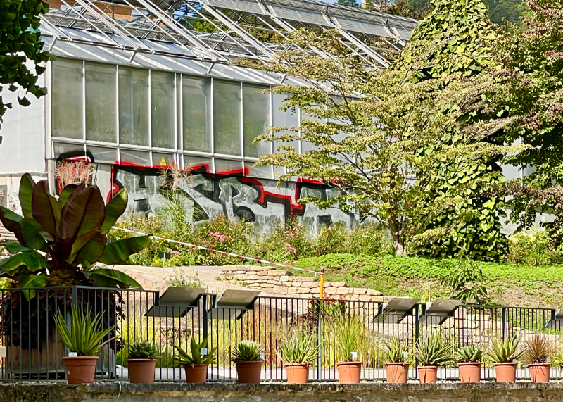 Jena. Vandalismus im Botanischen Garten in Jena: Täter hinterlassen großflächiges Graffito.