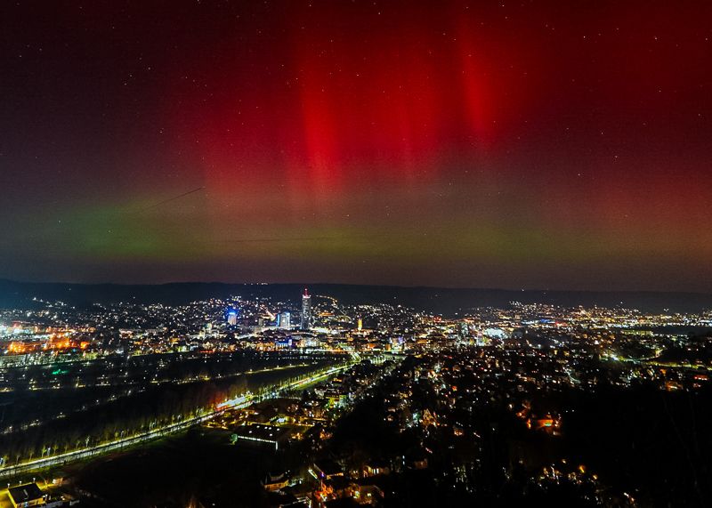 Jena. Nordkap-Gefühl über Jena: Polarlichter tauchen den Himmel in ein Farbenmeer.