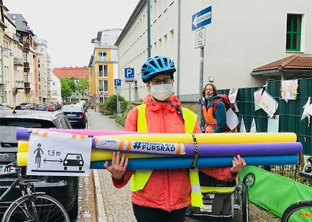 Jena. Der Fahrradclub ADFC Jena-Saaletal machte mit einer Fahrraddemo auf den neuen Mindestabstand aufmerksam.