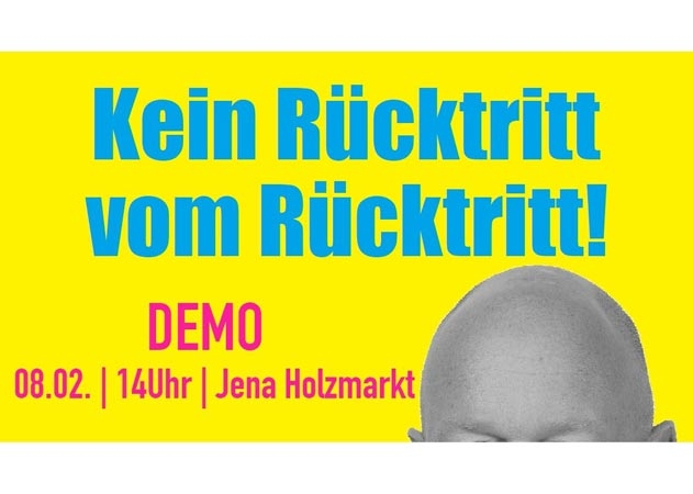Jena. Nach Kemmerich-Wahl: Heute Spontan-Demo in Jena „Kein Rücktritt vom Rücktritt!“ - 14 Uhr Holzmarkt.