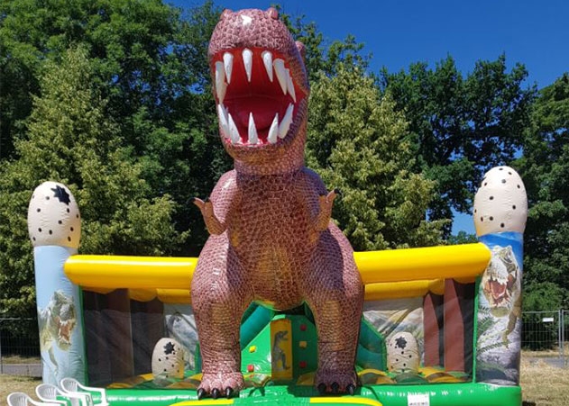 Jena. Willkommen im DINOLAND in Jena: Klettern, reiten, hüpfen auf lebensgroßen Dinosauriern.