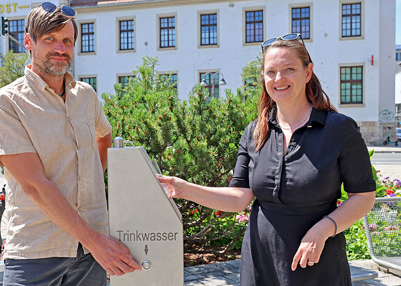 Jena. Kostenloses Wasser für alle: Trinkbrunnen am Engelplatz in Jena offiziell eröffnet.